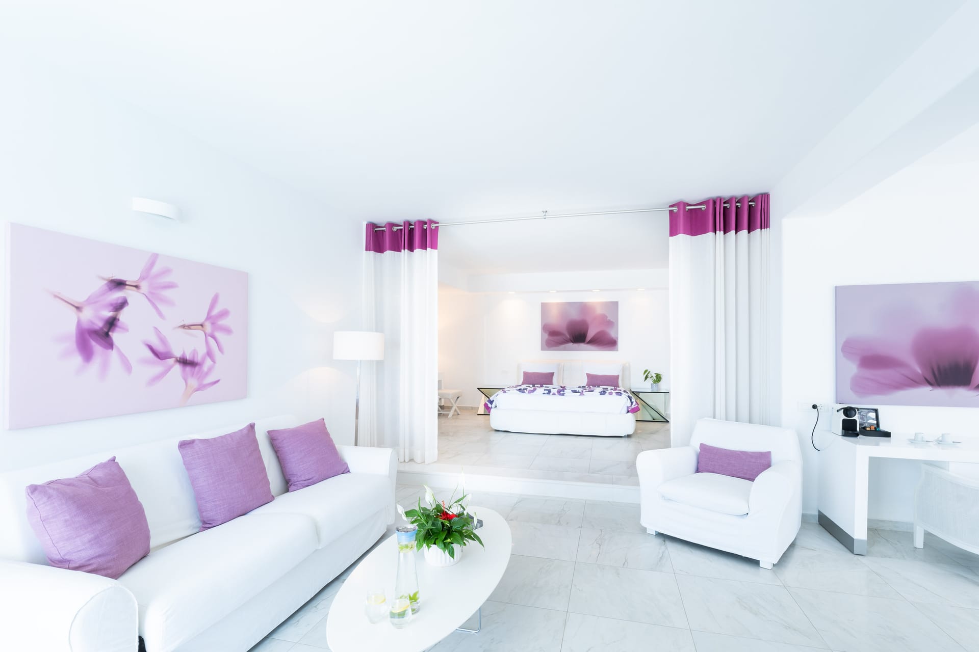 Bedroom, living room, dinning area, Nespresso coffee machine with capsules, bathroom with shower, private veranda with 2 open air posts, private infinity outdoor pool and sea view.